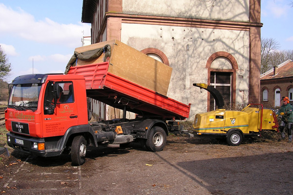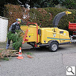 Die Verarbeitung von bis zu 16 cm dickem Astwerk ist vor Ort möglich. Das Häckselgut kann zur Abdeckung von Beeten oder abgelagert als Häckselkompost zur Bodenverbesserung verwendet werden.