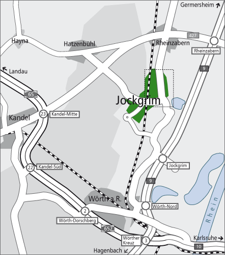 In Jockgrim erste Straße links (Otterbachstraße). Dieser folgen bis zur August-Wilhelm Str. Hier links abbiegen bis zur Nr.11, letztes Gebäude auf der rechten Seite.